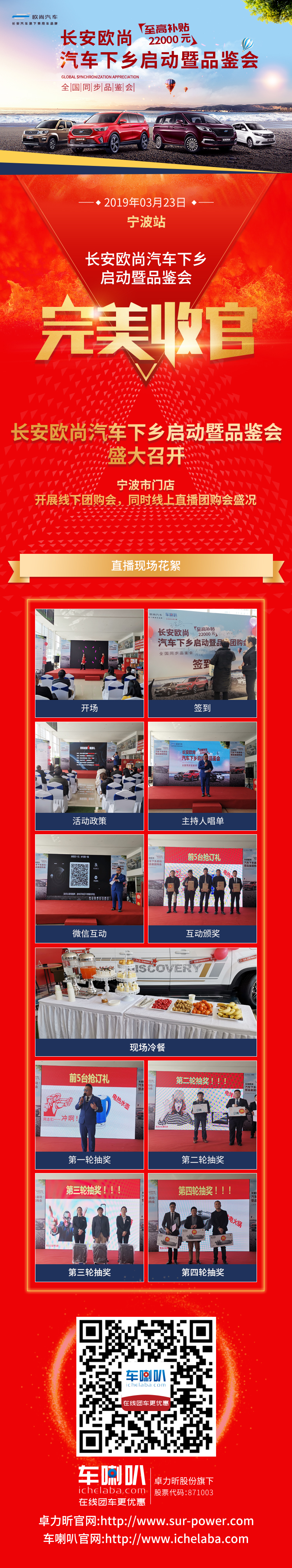 2019年03月23日,车喇叭携手长安欧尚汽车下乡启动暨品鉴会——宁波站圆满结束!此次活动仅2个半小时的时间,场面十分的火爆,活动现场更是人头攒动!还有众多好礼循环抽奖,车友们满载而归!